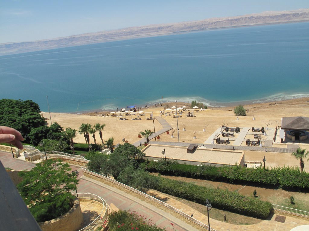 There followed a long rattling bus trip from Petra to the Dead Sea. Our final two nights were booked at a resort hotel in that place of mythic renown. However little stock I have in Abrahamic lore, I was certainly curious about setting foot near the supposed site of Sodom and Gomorrah, destroyed by Yahweh for their wickedness. Perhaps the Abrahamic deity would be tempted to rain a little brimstone on an old blasphemer, briefly in the same vicinity…