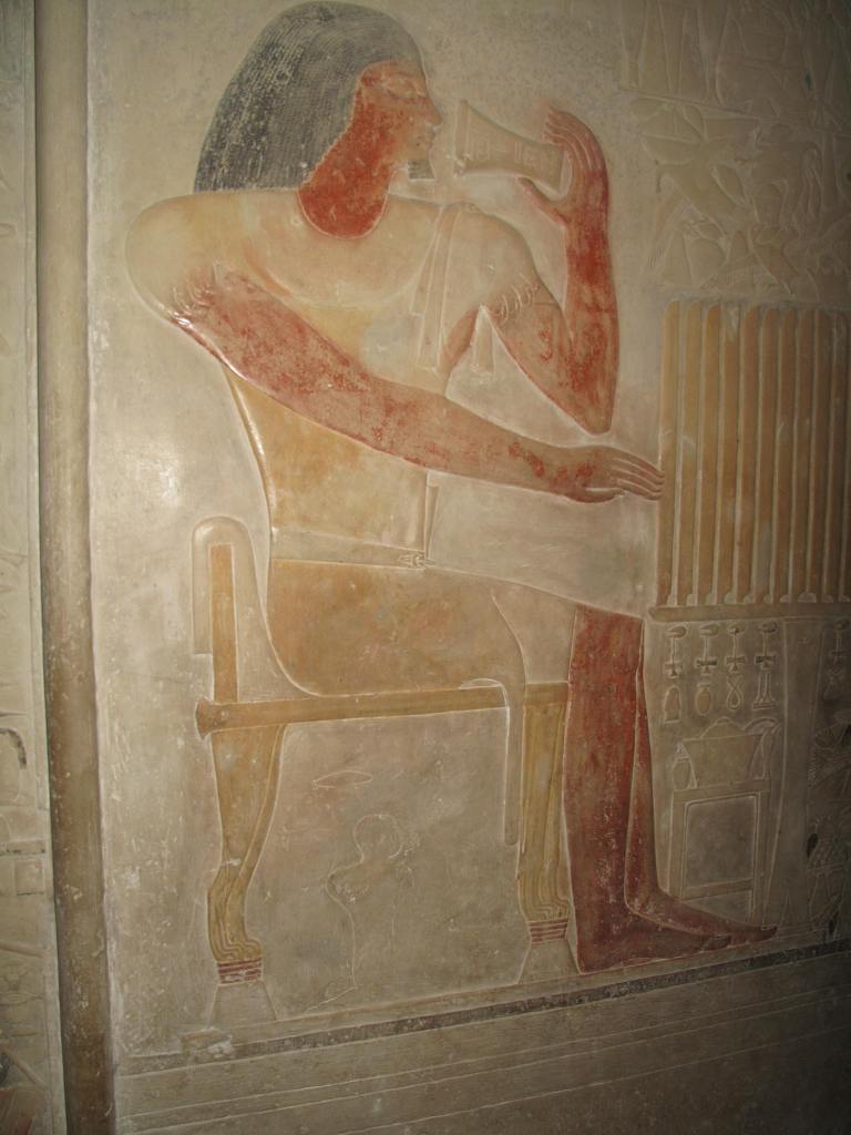 After a mere forty-minute line up, we did see the tomb of Amenhotep II (1427–1397 BCE). Some biblical scholars have identified him as having been a more likely candidate than Ramesses as the Pharaoh played by Yul Brynner in ‘The Ten Commandments’. His mummy was long absent from the tomb–– separated from 3400-year-old renderings of such funerary attendants as Horus and Anubis, intended to protect his ‘ka’ [soul]… Apparently, until the recent introduction of humidity controls, tomb paintings hieroglyphics were deteriorating from mass exposure to breath and sweat.