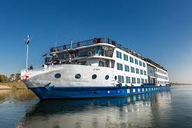 The MS Tuya was a triple decker with a hundred and fifty passenger capacity: one of nearly three hundred tourist boats that ply the Egyptian Nile in high season––mostly internationally owned and operated. In our four days between Luxor and Aswan, our ship was more often docked than in motion. We not only stopped at designated tourist sites enroute, but sometimes docked in the middle of the night. When disembarking for the site visits, we usually had to cross the decks of no fewer than three other cruise ships. According to Popsy, a McCruise in the high season might require crossing the decks of as many as five ships before reaching the gangway. Unsurprisingly, the higher-class cruise boats were docked on the inside…