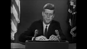 The country came first to attention through the historic address of President JFK watched live on TV in October 1962. Kennedy announced that the Russians had sneaked nuclear missiles onto an island, the name of which the sounded like “cuber” in the presidential accent. Kennedy warned that the missiles could strike: “…as far north as Hudson’s Bay, Canada.” Like many 11-year-olds of the era, my imagination was already rife with images of enveloping mushroom clouds. For weeks thereafter, there was hardly a waking hour without some thought of air-raid sirens, fallout shelters or the imagined blinding light in the instant before evaporation…